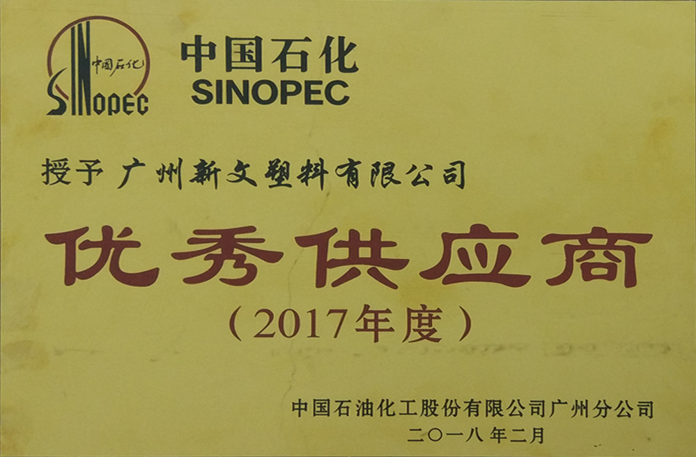 我司榮獲中國(guó)石化2017年度優(yōu)秀供應(yīng)商